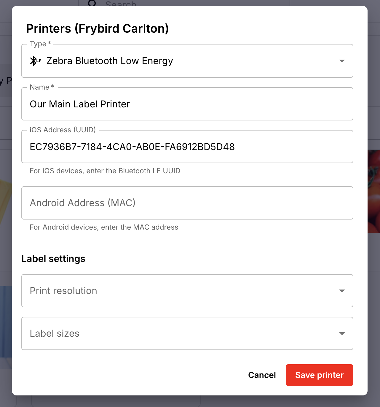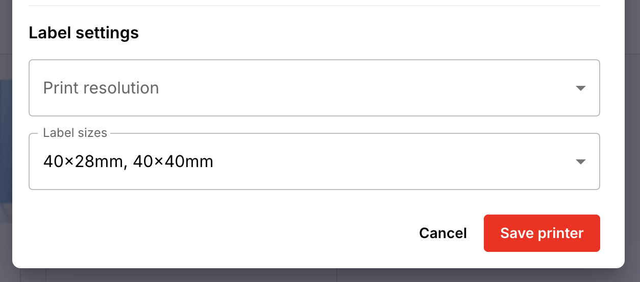 If you don't specify label sizes for your saved printers, Operandio will just remember the last printer you selected to print labels from.
