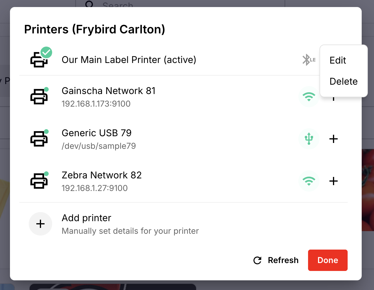 Our new advanced printer management functionality is currently in preview. Please contact support if you would like it enabled in your account. Requires the label printing module.