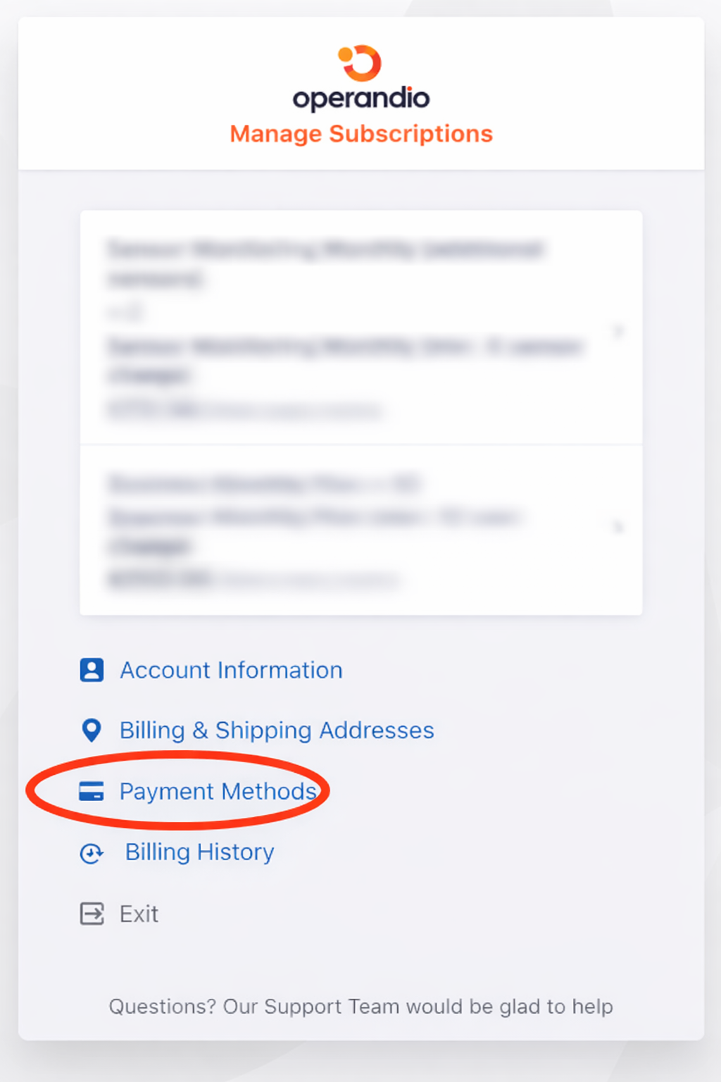 If you have any further questions around your plan or payment method please contact billing@operandio.com